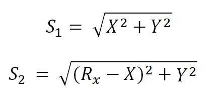 - S1 y S2 son las longitudes de las cadenas que queremos averiguar