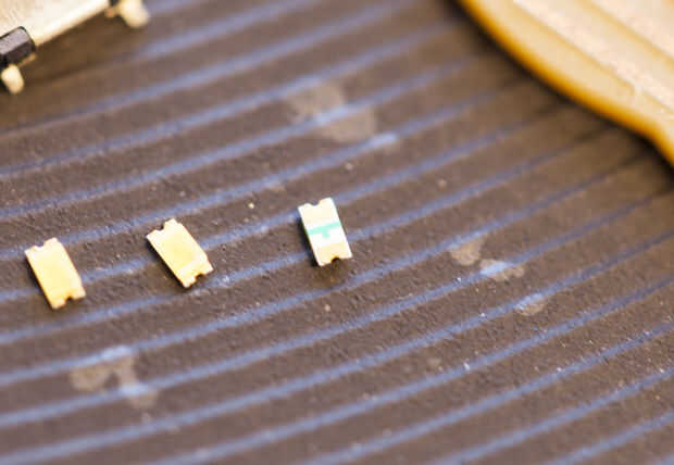 - Ahora sabes dónde colocar los LEDs y que manera de orientarlos. Colocar en los lenguados de la soldadura y presionan suavemente hacia abajo.