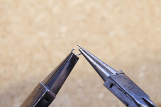 1. Agarra tus anillas y alicate a torcer los extremos aproximadamente 1/8" de separación. Asegúrese de que estás girando, por lo que el anillo todavía permanece redondo. No quieres tirar el anillo en una U.