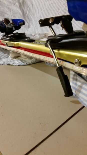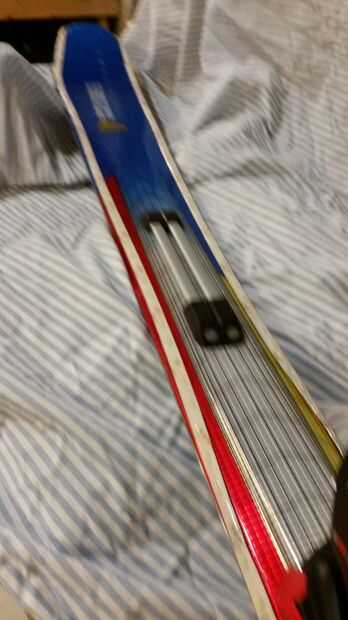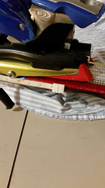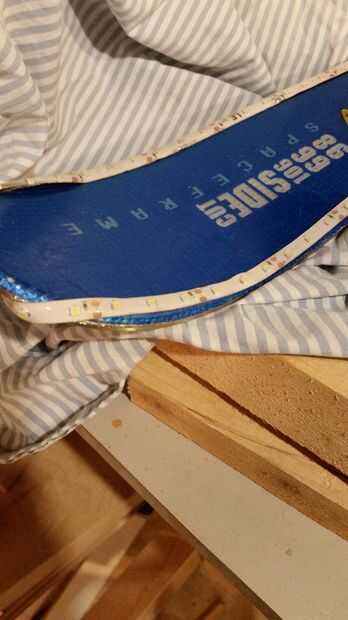 Ahora mida cada tira de LED para encontrar su centro. Esto sería a unos 1,25 metros para mí. Pegar el centro derecha en el extremo de la estación de esquí, y lo querrá superglue en lugar. Ahora enrolle cada extremo alrededor de la ip y abajo el borde de las pistas de esquí. Otra vez, pegamento puede ser de utilidad. Continuar pegando el LED a lo largo de la estación de esquí, hasta llegar al final. Si se hace correctamente, estos deben ser en el mismo lugar a cada lado de la estación de esquí. Repita para el otro esquí.