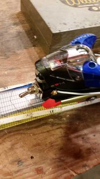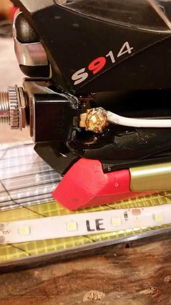 1. ahora, con todos los acabados de soldadura, aplicar pegamento para el interruptor y el LED grande y colocarlos en la Unión frontal y debajo el enlace posterior, respectivamente.
