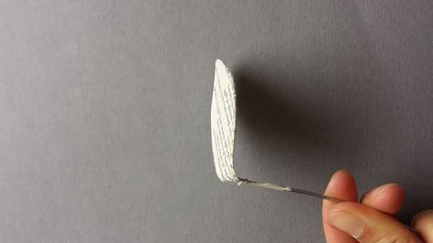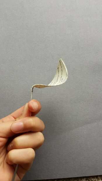 Para los pétalos interiores, les doblado a 90 grados de sus tallos (primera imagen) antes de formar una S curva (segunda foto). Entonces agrupan los tres pétalos interiores a 120 grados uno del otro y envueltos juntos para mantener ese posicionamiento.