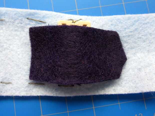 1. cortar un trozo de fieltro lo suficientemente grande como para cubrir el soporte de la batería y a coser el material alrededor de él.
