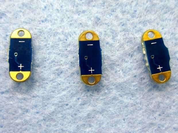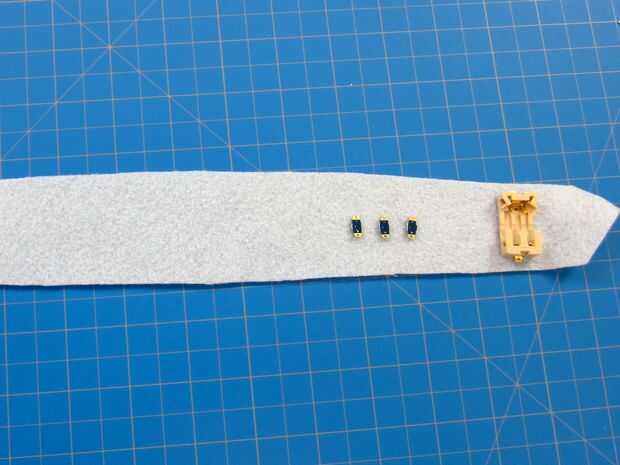 Usted debe tener todos los extremos negativos de los LED y el soporte de la batería todo frente a una forma (en estas fotos, los negativos extremos queden hacia arriba).