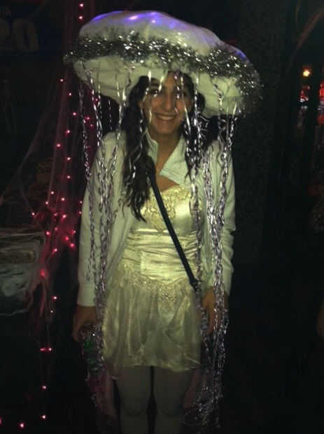 3. recorte un orificio pequeño en la parte superior del sombrero y cadena de luces a través de (baterías en el interior del sombrero).