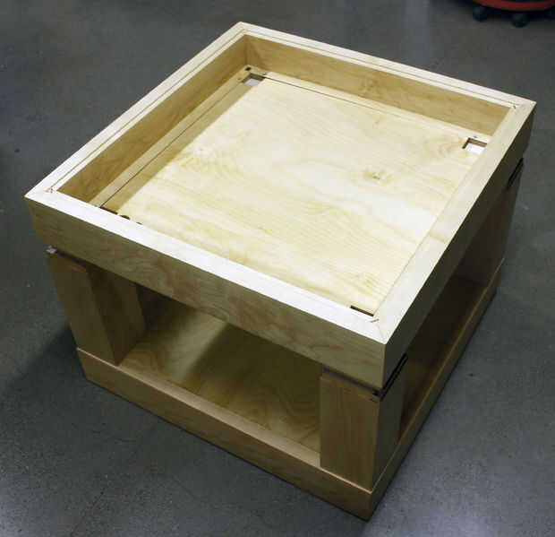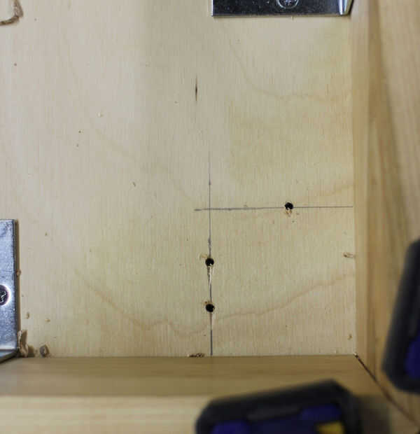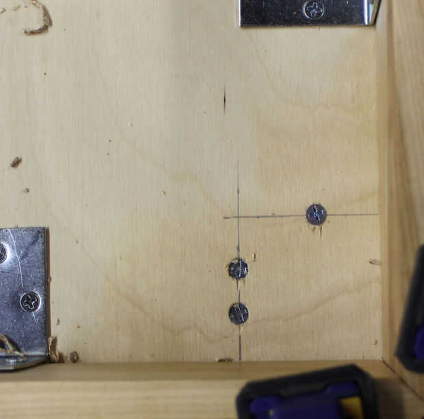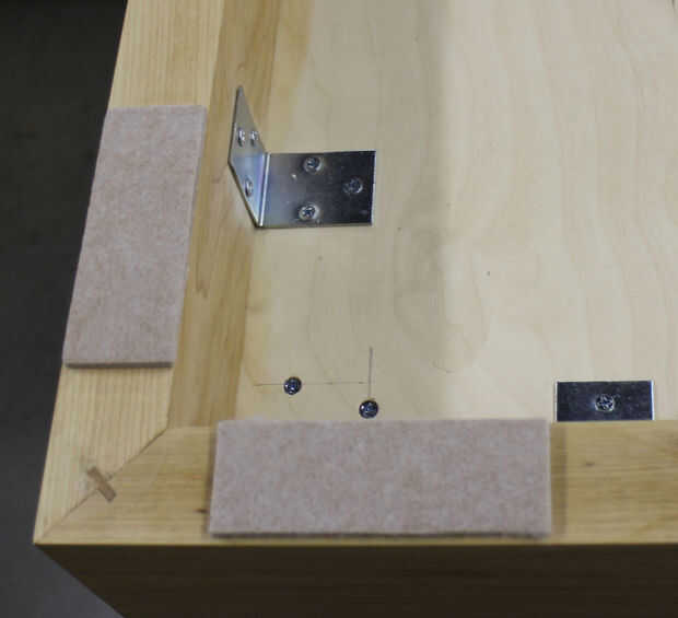 Del mismo modo, os adjunto la base para el montaje de la parte superior y piernas. He marcado en el centro de los lados interiores de las piernas sería y taladrar agujeros piloto antes de añadir tornillos. Para terminar la tabla, apliqué las tiras de adhesivo muebles para asegurarse de no dañar el piso y puede deslizarse fácilmente.