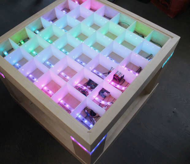Este proyecto fue un regalo para mi hermano (batería), que decidió convertir un bombo en una mesa para su nuevo apartamento. He instalado algunos LEDs RGB en el interior y diseñado una interfaz para controlar las luces de dos formas diferentes (mezcl