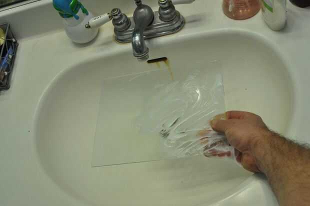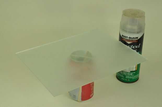 Aplique vidrio esmerilado Rustoleum (o producto similar de otra marca) aerosol a un lado del vidrio, siguiendo las indicaciones del producto. Se aplica rápidamente. Una o dos capas es suficiente para este proyecto.