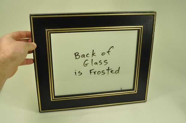 Una vez seco, vuelva a colocarlo en el marco con la cara rociada hacia la parte posterior. Doblar los clips de metal para sostener el cristal en su lugar.