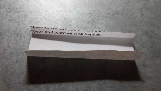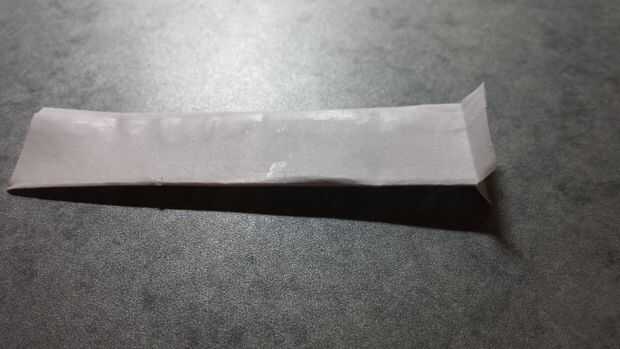 Una vez que se corta, doblar la parte superior e inferior no importa cuánto hacia abajo como altura de la sección media es aproximadamente de diámetro de la batería de la moneda. Los bordes superior e inferior superpuestos para estabilizar todo antes de cortar unos 0,5 cm en los lados para separar las dos capas un poco de pegamento. (ver la cuarta foto de arriba); Usted verá por qué pronto.
