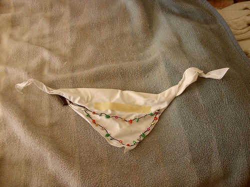 Paso 3. Retirar bandana perro y organizar la secuencia ligera.  Desea que el interruptor sea fácilmente accesible, pero no muy visible.  Se puede mantener en su lugar con cinta adhesiva para facilitar la costura