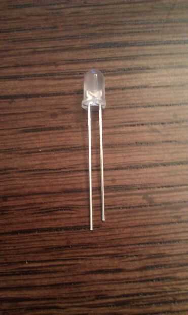 Utilicé un LED de color de rosa 5mm difundida, pero funciona cualquier color con una tensión directa alrededor o levemente por encima de 3v. Esto le permite utilizar una batería de 3v sin una resistencia. Otros posibles colores son blanco, azul y naranja. Información sobre la tensión directa del LED está disponible en línea.