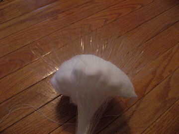 Una vez que todas las fibras se tiran a través de la tela, subir el paquete en el soplo como usted puede mientras que al mismo tiempo y muy suavemente tirando de las fibras de la parte superior. Estire el lazo y corbata en un nudo.