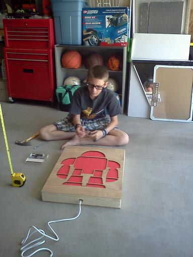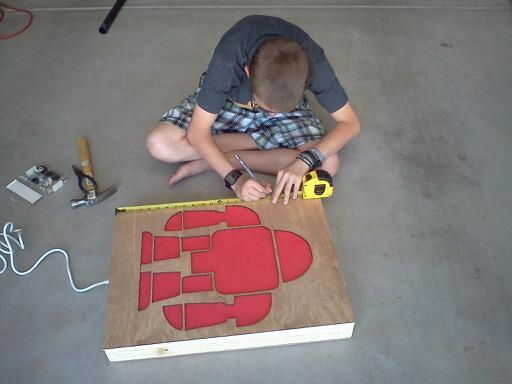 paso uno se corta al más perezoso el diseño deseado en la pieza delantera de la madera. Luego pegue el elegido pedazo de papel en la parte posterior de su corte. el papel va a ser desactivar la luz.