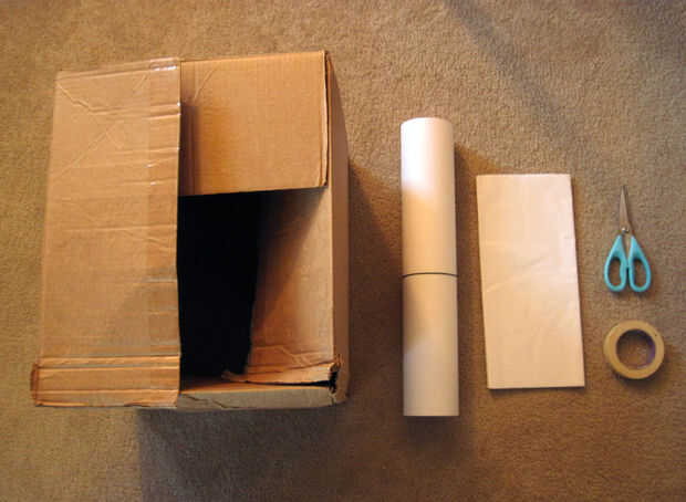 Lo que usted necesita: una caja de cartulina blanca, papel de seda blanco, tijeras/cúter, cinta.
