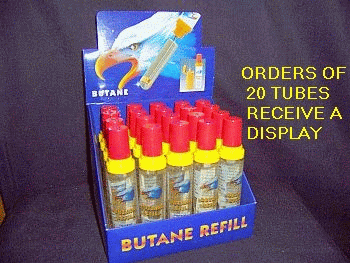 Si te sientes realmente atrevido, cinta uno de butano pequeña recargar los cartuchos (los que se muestran en la foto) en el encendedor. Encender el encendedor como en el último paso y tiro la cosa entera en el suelo, asegurándose de que usted tire duro resolver el caso del butano plástico. Le dará una llama grande y un fuerte silbido.