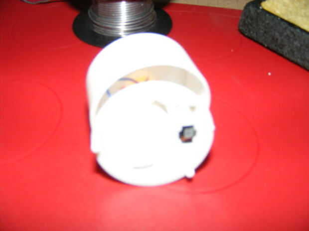 Ah y asegúrate de alimentación los cables de la parte trasera base a través del orificio de montaje del LED en el caso antes de soldar el LED en la parte superior. Queremos que vuelva el caso juntos después de que haya terminado. Tenga en cuenta las conexiones para que el + positivo de la batería va al cable correcto en el LED o no funcionará.