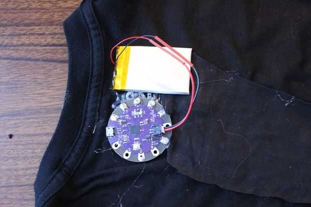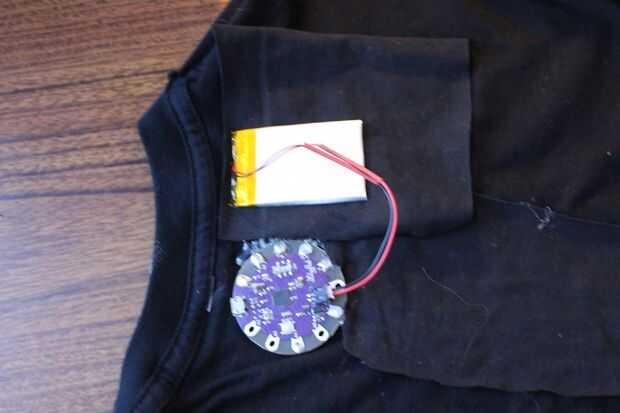 Coloque la batería donde usted lo desee. Cortar un pequeño trozo de tela más grande que el tamaño de su batería y contorno de 3 lados de la plaza a la camisa del pegamento. Una vez seca, que son capaces de meter la batería el bolsillo poco ha creado.