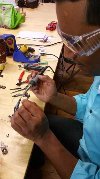-Fijar sus lentejuelas en sus extremos de soldadura