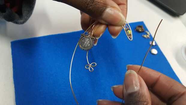 Una vez que tienes tu circuito ubicado cómodamente dentro de su ciclo de pendiente, tome el cable de calibre más delgado y asegurar ambas piezas juntas por envolver alrededor de ellos - a partir justo por encima del extremo de LED de lentejuelas.