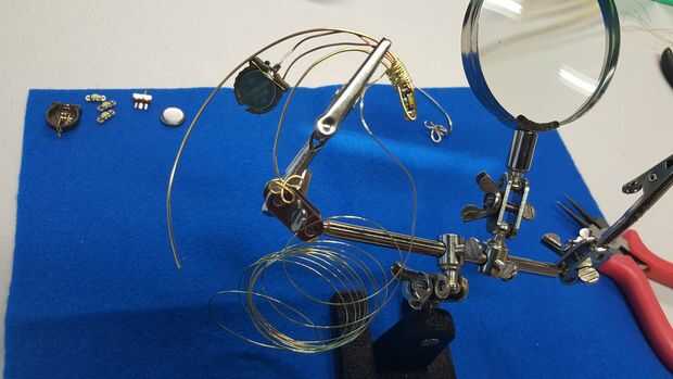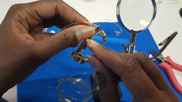 Si tienes una ayuda herramienta de mano, usted puede utilizar para sostener su pendiente de alambre y condujo junto como en la imagen.