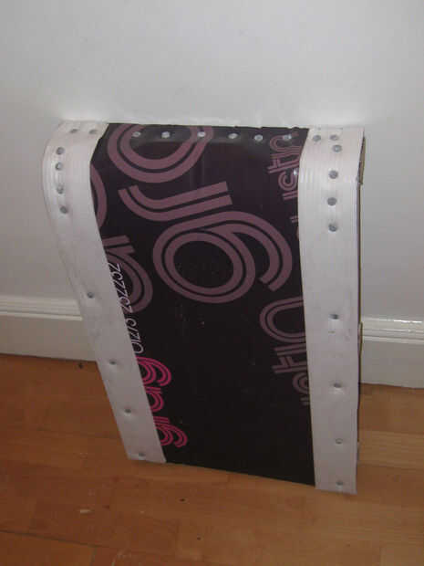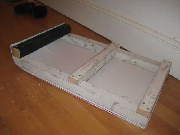 Los materiales fueron mosca punta en algunos compartimientos comunales cerca de mi casa; Este trineo está construido principalmente de un cartel de venta reciclado.