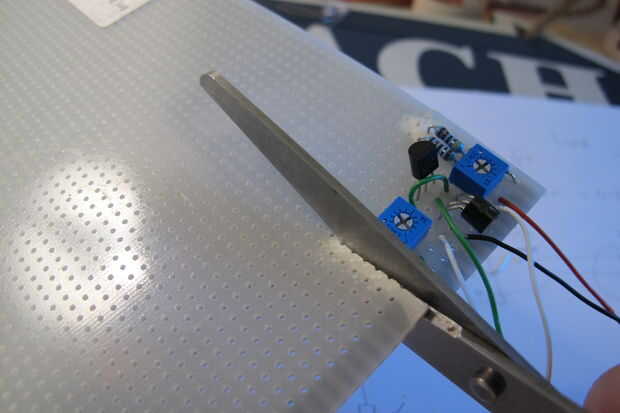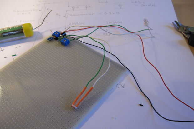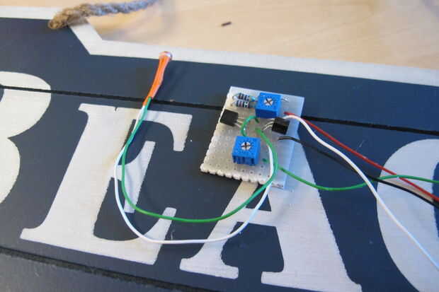 Afinar la junta con los potenciómetros. Uno será ajustar la sensibilidad de luz/oscuridad y la otra se desvanecen los LEDs que se conectan a la salida de entrada/salida.