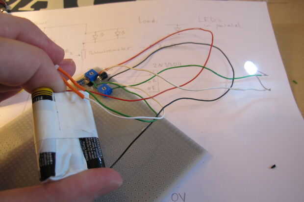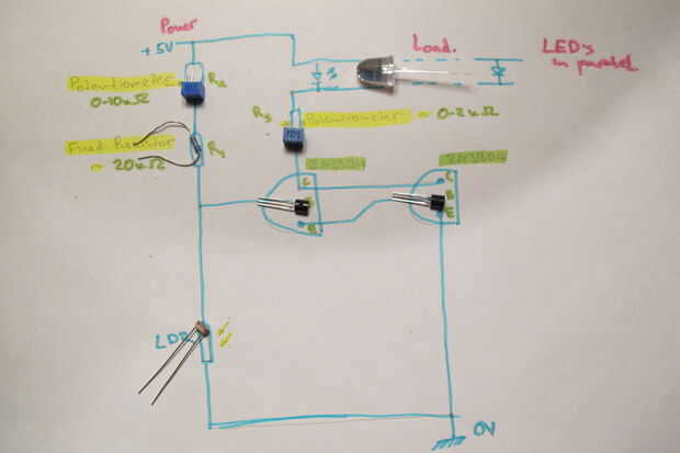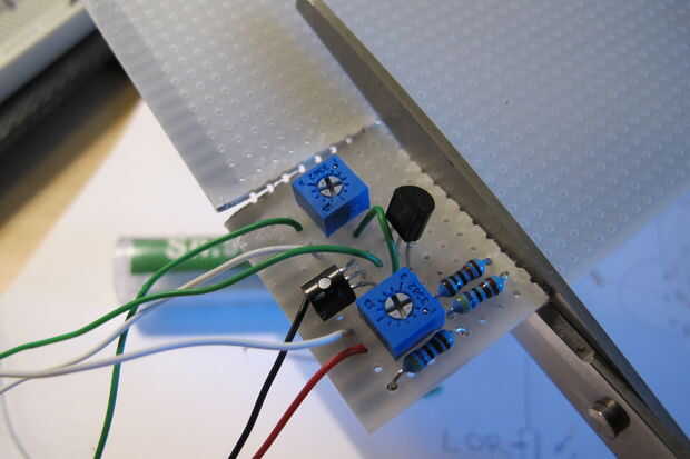 Si no te gusta la gama que la iluminación de encendido/apagado puede ser, puede cambiar la resistencia de 20kR o el potenciómetro 10kR que están conectados a través de la base del transistor (a media pierna en 2V3904) y la fuente de alimentación. Levanta la resistencia conducirá a una activación más oscura de la iluminación.