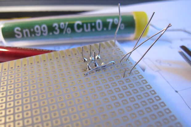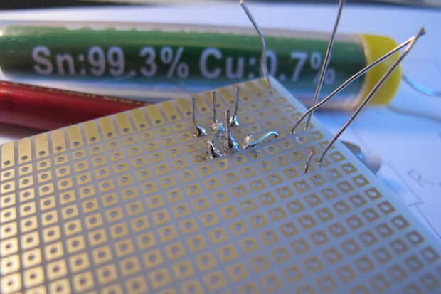 Poner todos los componentes uno por uno viendo el esquema y todo en lugar de la soldadura. Luego la Junta Directiva en su forma final y probar su funcionamiento.