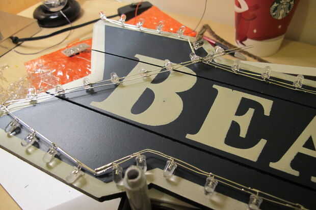 Inicialmente enseñó a hacer una conexión de puente-como entre todos los LEDs. Esto me permitiría al espacio en una distancia más grande, pero me crearía mucho trabajo con cables de corte y les soldadura.