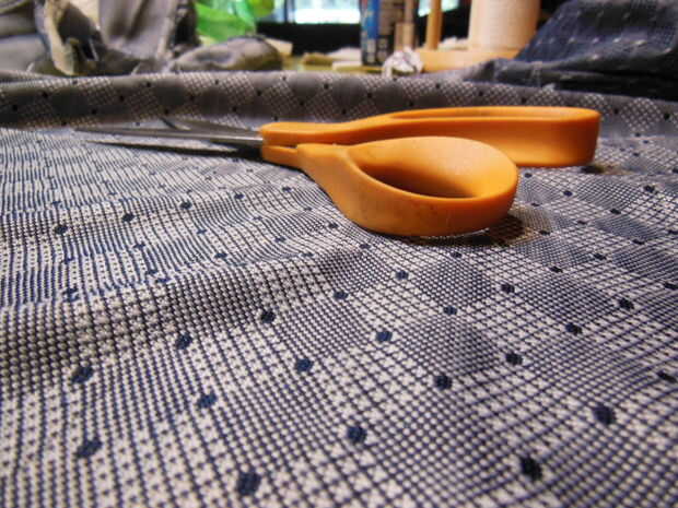 Utilizando el accesorio de la herramienta de Velcro, ir a Camisas viejas o trapos y ver si alguno se pegan al accesorio. En mi caso encontré una vieja camisa de poliester 100% que no le importaría sacrificar (hay algo ser dicho para camisas de algodón 100%). Una vez que haya identificado una camisa, cortar las mangas, cuello, etc.... Deseche el collar (recuerde mantener esos botones!) y corte a lo largo de las costuras para que acaben con bonitas, planas, solos capas de tela.