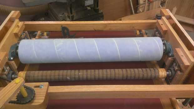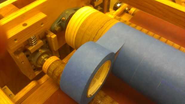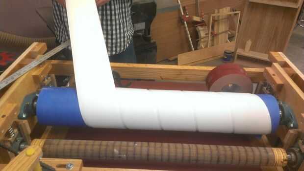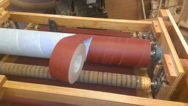 Envuelva el tambor con el velcro con adhesivo y luego coloque el papel de lija en. La lija es lazo, el blanco es el gancho.