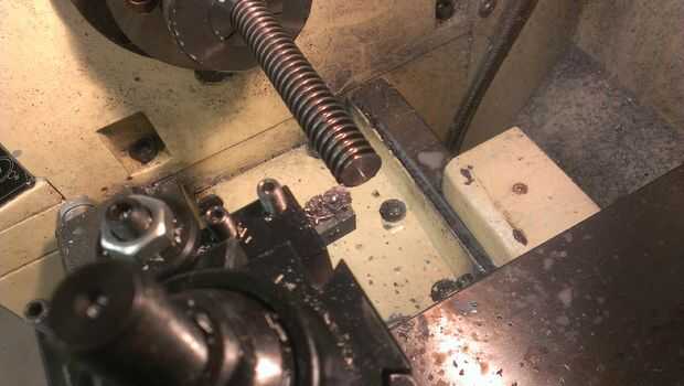 solía un torno de metal gire los tornillos hacia abajo para acomodar los cojinetes descarados que los tornillos a.