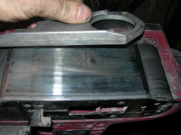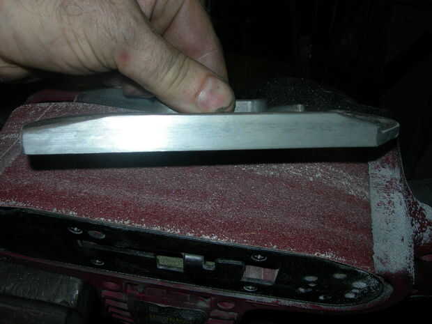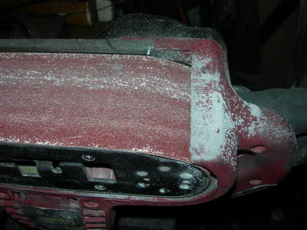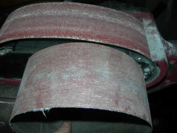Comience con una 80 grano de lija. Cuando la costura ha sido molida off, interruptor de a correa del grano 120 para quitar los arañazos de grano 80