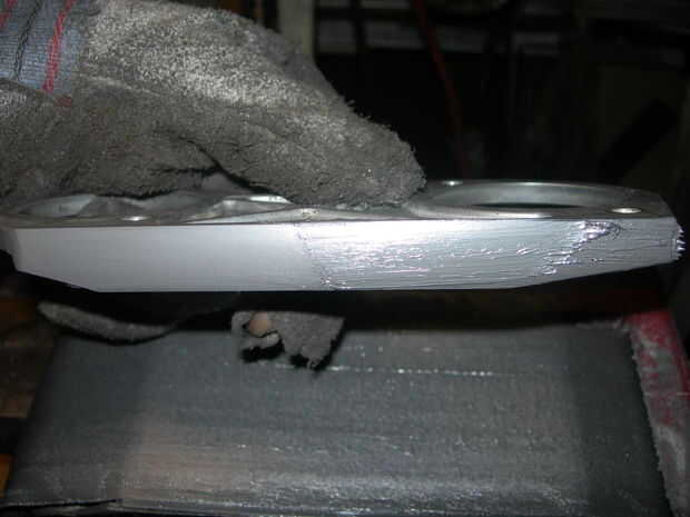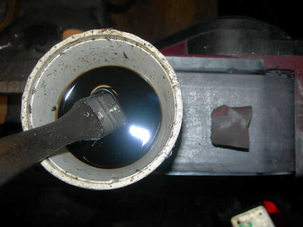 Aplicar una capa de marrón compo para 400 grano lija, lijadora basta con ejecutar y pulse compuesto abajo en cinta. Cuando tengas una capa uniforme, sumerja el cepillo en aceite de motor y pintura en una capa de aceite (mientras que sander todavía está funcionando)