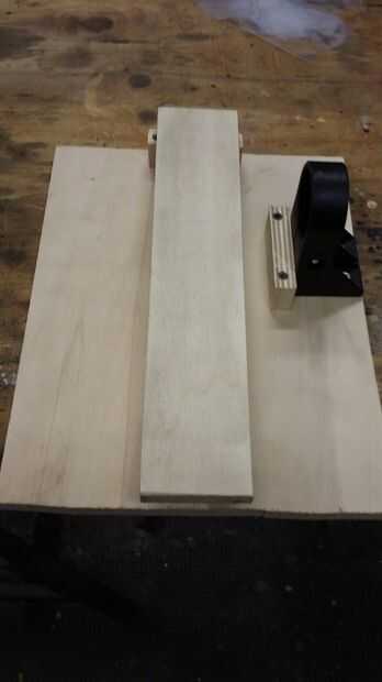 este es un simple soporte que hice para celebrar mi lijadora de banda portátil a la mesa para hacer cuchillo y carpintería. Mi lijadora vino con parte trasera plana para perno a una tabla, pero estoy demasiado barata para comprar los soportes, así qu