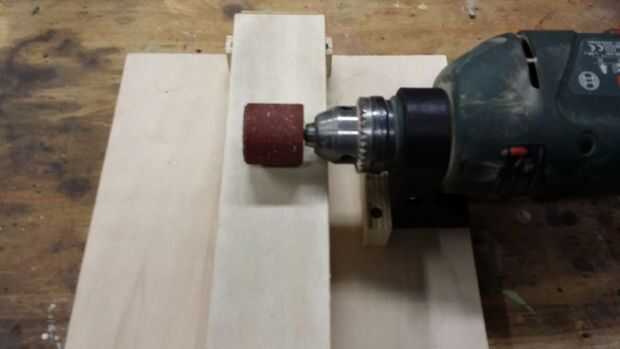 Bloquear el taladro en el soporte y verificar el paralelismo entre el tampón abrasivo y la base ajustable.