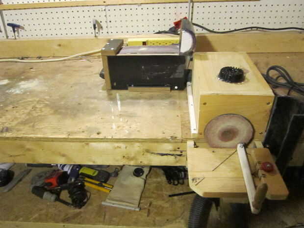 hacer un stand para la lijadora de banda y sin una mano!Mi maravillosa esposa me compró un merecido herramientas Sears Craftsman hace unos años. Una de las herramientas en el baúl del tesoro era una lijadora de banda. Sin embargo, realmente no estaba