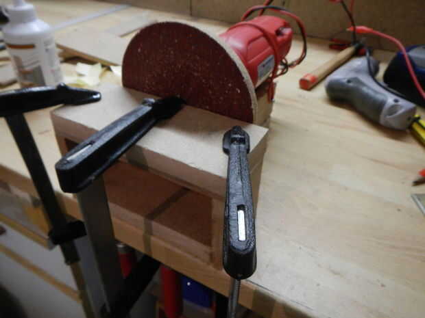 me encontré siempre necesidad de un disco montado de banco de lijadora de banda para redondear los bordes de la madera principalmente al construir juguetes de madera para mi hijo. Ser un culo apretado significaba desembolsar NZ$ 180 para una unidad c