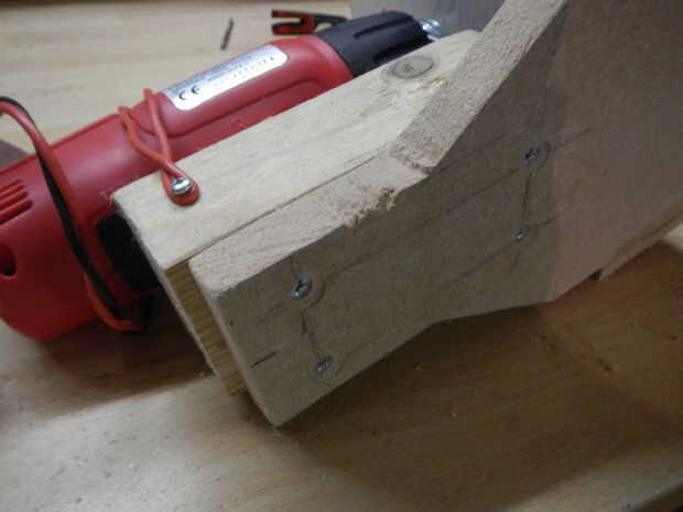 Taladre 4 agujeros debajo de la base para fijar el soporte del taladro. Luego con el soporte y péguelo en el lugar. El extremo del soporte debe estar tan cercano como sea posible con el disco de arena. Tiene que ser perpendicular también.