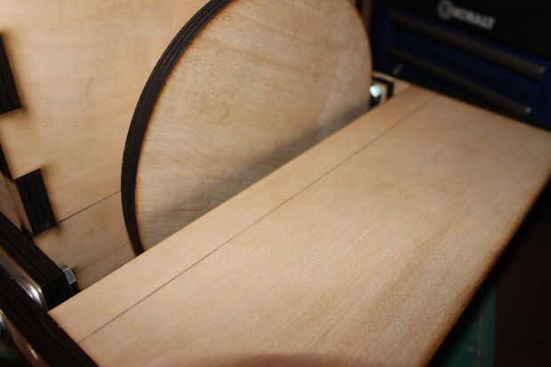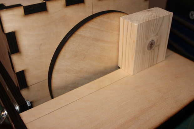 Para equilibrar el disco hice un bloque de lijado que entonces corrí hasta la parte más distante de la disco. Luego marqué esto. Esto representa que el disco será después de lijar. Luego tome el bloque de lijado y correr por todo el disco hasta que todo esté uniforme alrededor de dicha línea. Esto hará que la Plaza de disco a la mesa, que es lo que importa. El disco va ser completamente sesgado, pero como es cuadrado con la mesa tienes una buena lijadora.