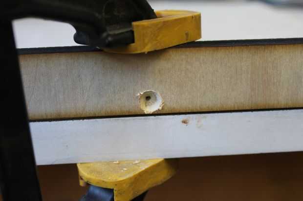 A continuación necesitamos armar la mesa de lijado. Para esto que acabo de hacer seguro que el "frente" de la sección de la tabla con sus soportes. Después les drásticas, puse dos tornillos en cada lado. Puede utilizar pegamento de madera para hacer aún más fuerte. Yo había avellanado mis agujeros para que la madera no se dividiría. Porque no tengo un avellanado por parte del pedacito en el momento, utilicé un poco más grande para hacer el avellanado. ** IMPORTANTE ** Asegúrese de que utiliza agujeros recta y centrada, si la madera no se dividirán. 1/2" no es muy grueso por lo que necesitará su tiempo.