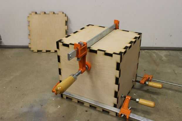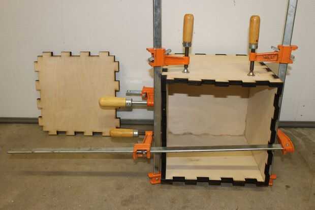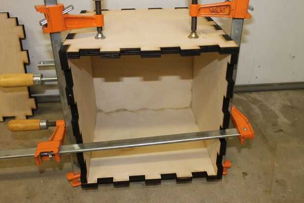 Ahora es el momento para pegar el cuadro. Al hacer esto, utilice una cantidad generosa de pegamento para madera. El uso de piezas que se hará el cuadro muy rígido y alinear. Con este método nunca he tenido que "cuadrado" mi caja. Para que funcione bien tienes que colocar todas las piezas juntas. Al pegar este cuadro, puse pegamento en 5 de los 6 paneles y fija para arriba. ** IMPORTANTE ** a pesar que hay pegamento en 5 de los 6 paneles, usted todavía necesita poner un 6 en mientras se seca. Esto evitará que todos los lados alineados. Si usted no puede no venir juntos perfectamente. Mis imágenes no muestran mi 6 pared fijada en, pero hago después de tomar la fotografía. Sólo mantenga pegamento el panel superior suelto y debe quitar limpiamente una vez que el pegamento ha fijado.