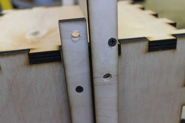 Esto le dio mucho apoyo. Me enteré que 2 arandelas no fueron suficientes en el centro. Cuando traté de esto, los soportes de caja flexionados demasiado, rasgando hacia fuera. Por esta razón he añadido 3 tornillo de cada soporte.