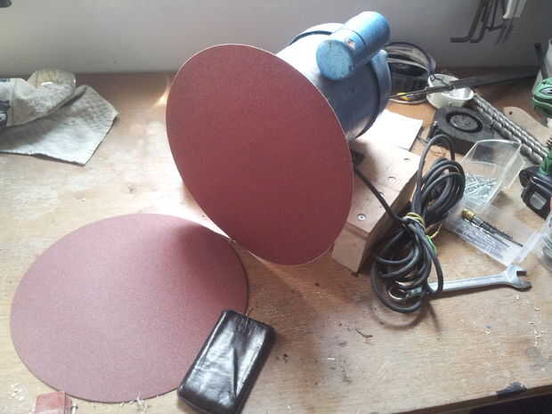 Comencé con la fabricación de una mesita en bruja atornillado el motor. Ordené a 30cm (diámetro) alrededor de 80 cuadrícula sandingpaper que la altura de este artilugio la globo ocular. El motor es un 380v se puede convertir a motor eléctrico de 220v de un viejo compresor quemado. Nada de lujo, antiguo pero confiable que geuss.