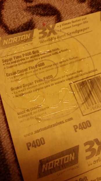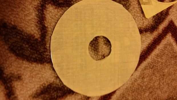 Agregar el pegamento y pegue el plato a la lija. Después de que el pegamento seca corta el plato con un cuchillo.