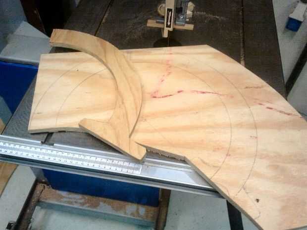 Empecé haciendo el patrón de algunos Encofrados capas, sacar y cortar la forma en la Sierra de cinta. Quería dos de ellos.