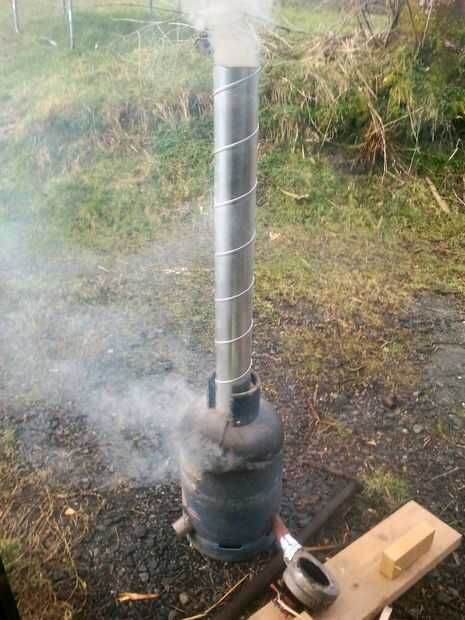 Usé un hogar hecho uno en un viejo tanque de gas propano, usando un soplador de una caldera de aceite viejo.