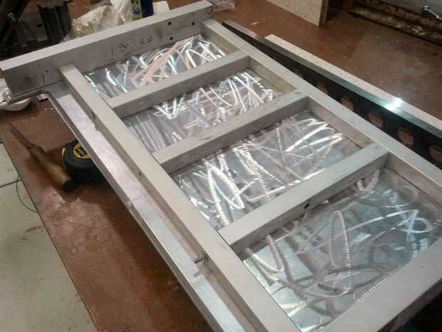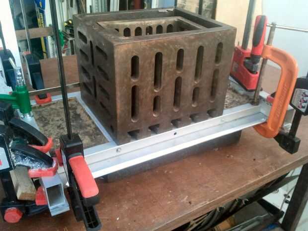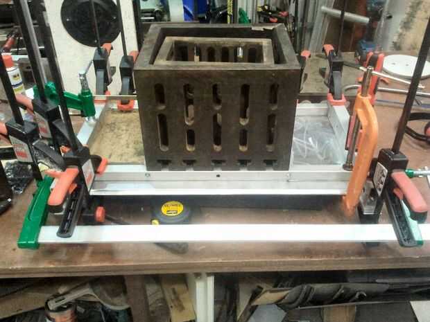 Para evitar vibraciones y añadir aún más rigidez, rellena los espacios creados por el marco con una mezcla de granito de epoxy brew casero, con alambre de acero de refuerzo.