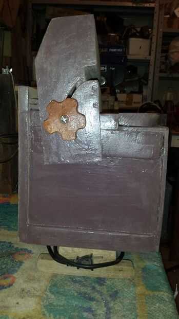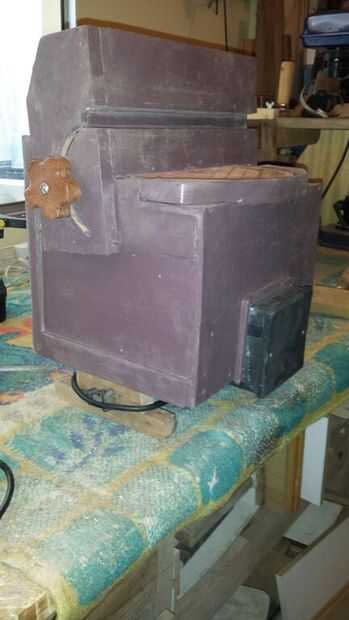 Na parte traseira da lixadeira observa-se un grado plástica de proteção da ventoinha motor e, sobre ela, una caixa acondiciona un chave liga-desliga e o condensador de partida motor (componentes Luv da lavadora de alta pressão). Foram adicionadas duas estruturas em "T" servem como pés e para enrolar o cabo de energia. Un guarda da lixadeira na posição vertical é un menos espacio ocupa.